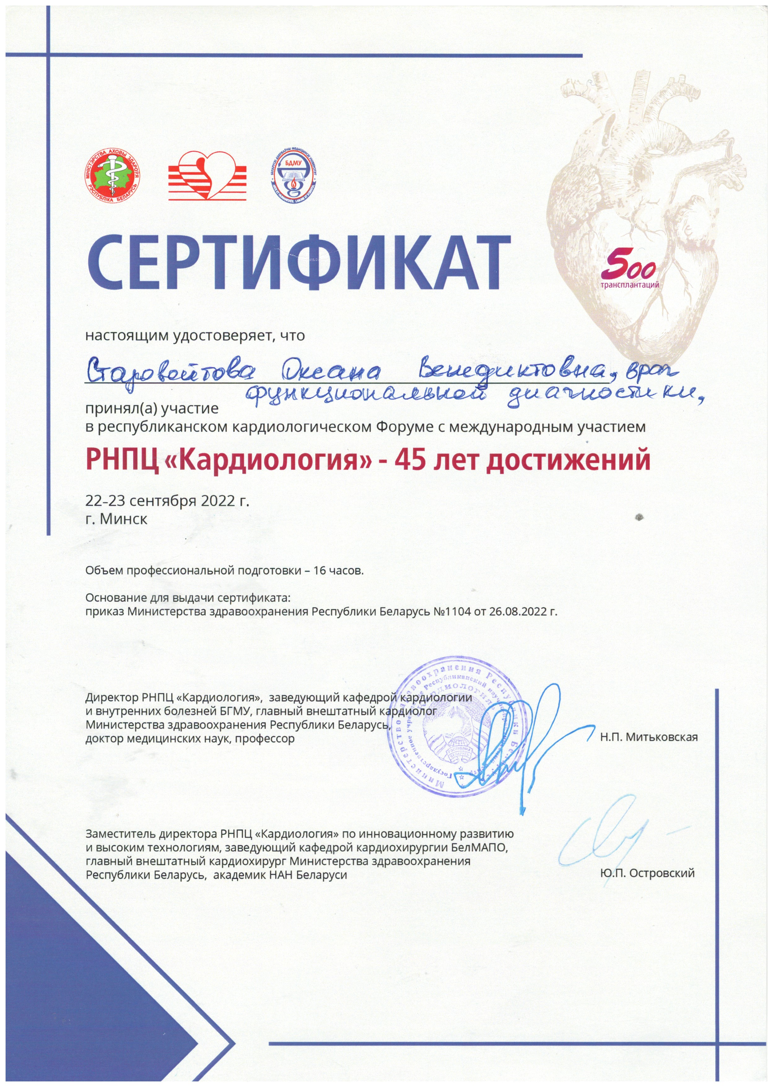 2022 г., Минск – республиканский кардиологический форум с международным участием « РНПЦ «Кардиология»- 45 лет